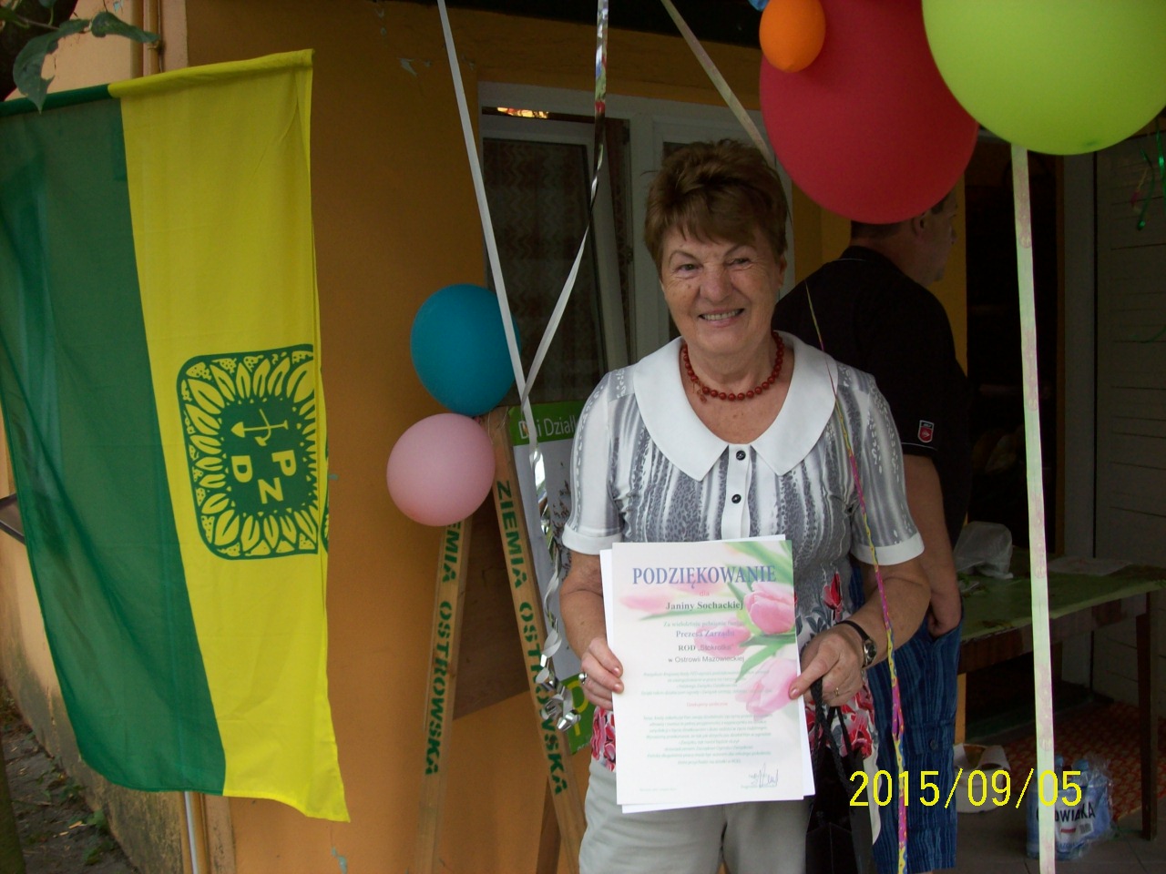 Za długoletnie i wzorowe kierowanie ogrodem , była prezes, pani Janina Sochacka została wyróżniona przez Prezesa PZD pana Eugeniusza Kondrackiego okolicznościowym dyplomem i nagrodą rzeczową. Pogoda była wspaniała, dlatetego też wspólne biesiadowanie było bardzo udane. Bawiono się przy najlepszych nagraniach muzyki pop.