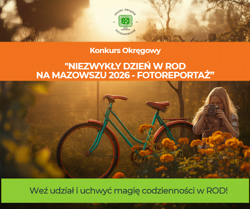 Okręgowy Zarząd Mazowiecki PZD na mocy uchwały nr 89/2026 z dnia 25 marca 2026r. ogłasza konkurs fotograficzny pod hasłem „Niezwykły Dzień w ROD na Mazowszu 2026 – Fotoreportaż”. Zachęcamy do udziału! Poniżej dokumenty konkursowe: